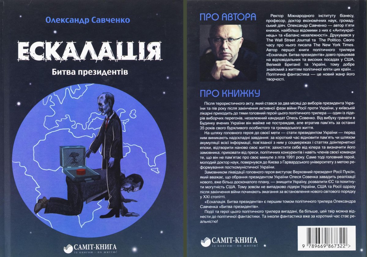 Олександр Савченко — ректор Міжнародного інституту бізнесу, доктор економічних наук, громадський діяч, автор резонансної книги «Ескалація. Битва президентів», у якій порушує питання взаємодії політичних еліт, світових тенденцій і шляхів розвитку української державності. Книга є — поєднання елементів політичної фантастики та реальних пригод, пережитих автором Олександром Савченком. Відомий український економіст та фінансист описує події, що розгортаються одразу після припинення активної фази російсько-української війни. Тоді розпочинається боротьбою за владу в Україні та посаду президента між трьома політичними силами. Книга допомагає краще зрозуміти геополітичну ситуацію у сучасному світі. Чому все склалось саме так, і що нам треба зробити, аби врешті перемогти.