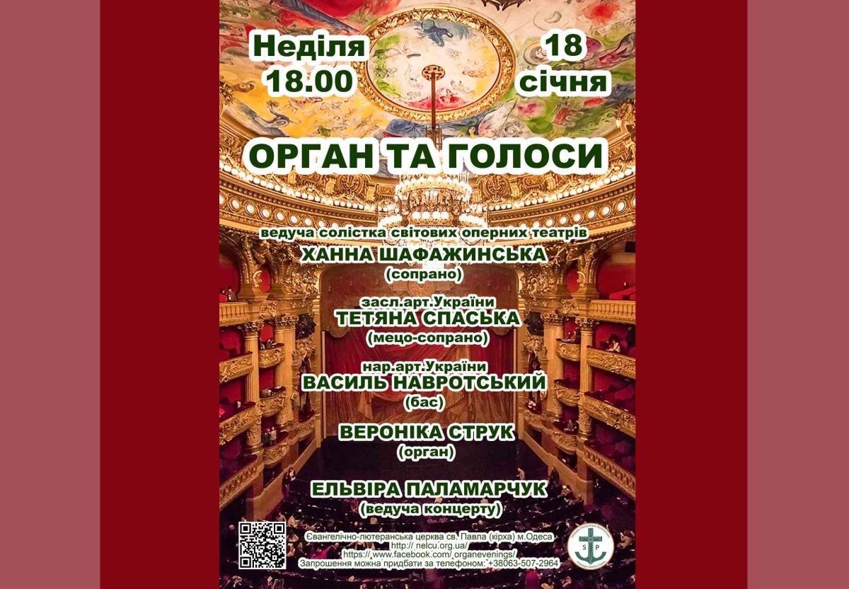 Вишуканий вечір духовної та оперної музики об’єднає велич органу й красу людського голосу у програмі, що охоплює шедеври бароко, романтизму та ХХ століття.