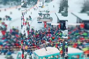 В Буковеле заметили немаленькую толпу людей, которые пытались воспользоваться подъемником. Соответствующее видео появилось в сети.