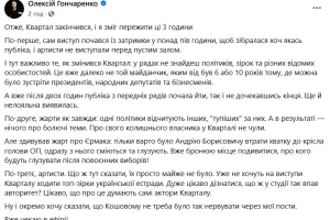 Народный депутат Алексей Гончаренко, который также посетил мероприятие, поделился собственными впечатлениями от концерта, что длился 3 часа.